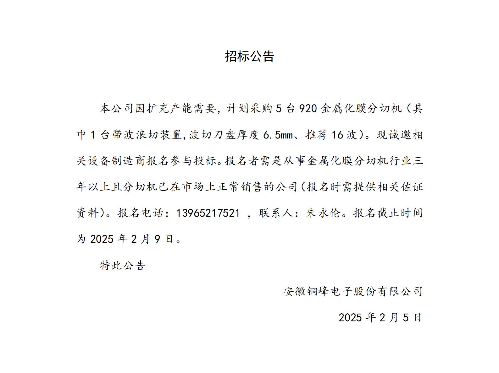 銅峰工業(yè)園新能源用電子元器件廠房項目消防工程招標公告