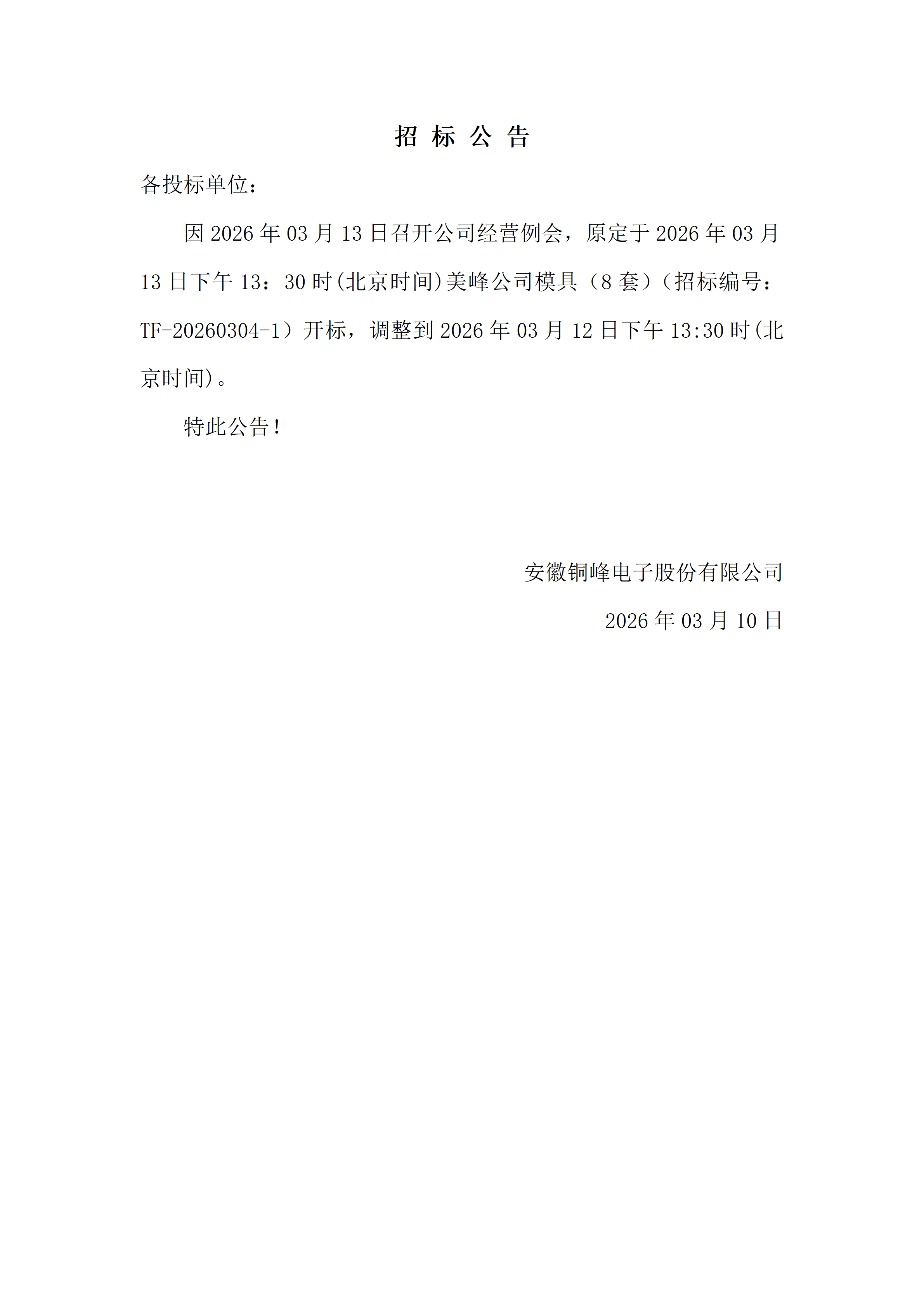 招標時間調(diào)整公告(招標編號:TF-20260304-1)_01