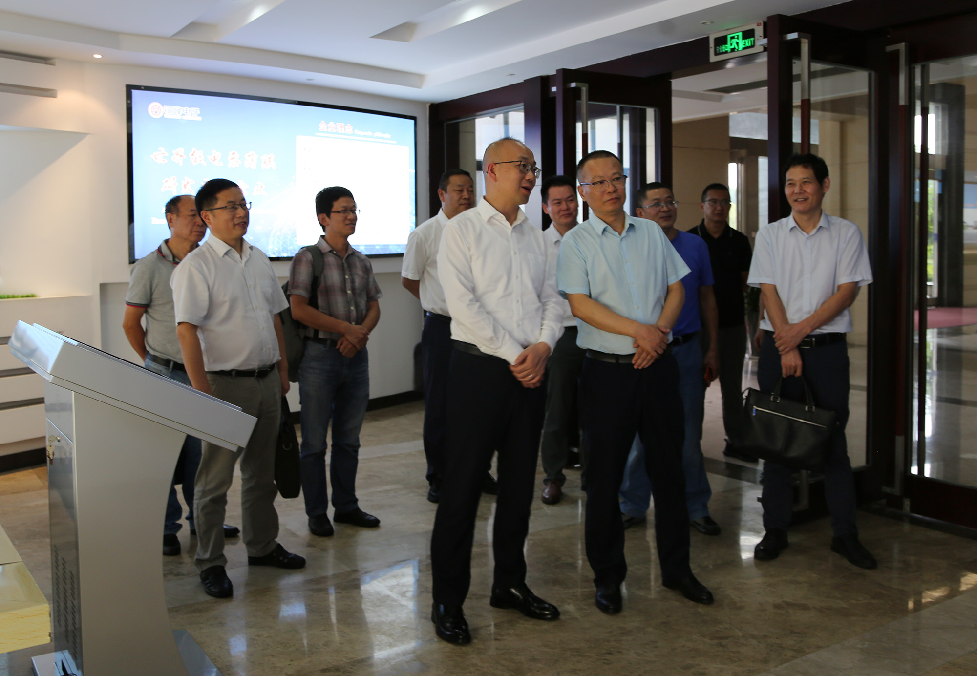 肖新一行參觀了公司展廳,并與公司領(lǐng)導(dǎo)和相關(guān)職能部門負(fù)責(zé)人座談交流。
