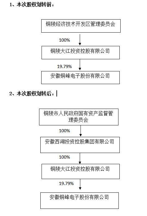 安徽銅峰電子股份有限公司(以下簡(jiǎn)稱“本公司”或“公司”)于 2022 年9月16日收到控股股東銅陵大江投資控股有限公司(以下簡(jiǎn)稱“大江投資”)的通知,為優(yōu)化國(guó)有資產(chǎn)配置,經(jīng)銅陵市人民政府批準(zhǔn),擬將公司實(shí)際控制人銅陵經(jīng)濟(jì)技術(shù)開(kāi)發(fā)區(qū)管理委員會(huì)(以下簡(jiǎn)稱“銅陵經(jīng)開(kāi)區(qū)管委會(huì)”)持有的控股股東大江投資100%股權(quán)劃轉(zhuǎn)至安徽西湖投資控股集團(tuán)有限公司(以下簡(jiǎn)稱“西湖投資”)。2022 年 9月16日,銅陵經(jīng)開(kāi)區(qū)管委會(huì)與西湖投資已就本次國(guó)有股權(quán)劃轉(zhuǎn)事項(xiàng)簽署了《關(guān)于銅陵大江投資控股有限公司之股權(quán)無(wú)償劃轉(zhuǎn)協(xié)議》。上述股權(quán)劃轉(zhuǎn)事項(xiàng)尚需辦理工商變更手續(xù)。